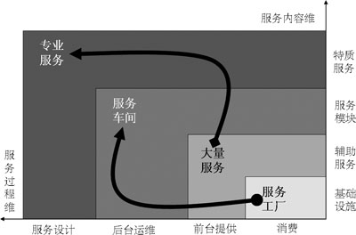 本質上講,電信服務產品的四類服務都是在此二維機理的作用下生成的,服務的內容映射著企業(yè)的有形資本資源和人力資本資源,服務的過程映射著企業(yè)的組織資本資源,從一種服務向另一種服務躍遷,不僅僅是服務過程和服務內容的重新整合,更重要的是需要彌補相應的資源,才能達到服務生成的結果,否則,躍遷就不會成功。