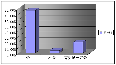 A、會(huì)(76.36%) B、不會(huì)(4.3%) C、有獎(jiǎng)勵(lì)一定會(huì)(19.34%)