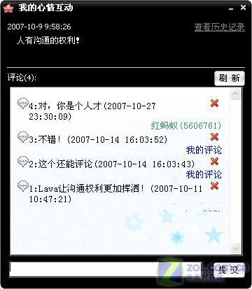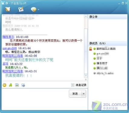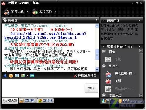 在群聊的過程中兩款軟件都各特色。百度Hi的特色是當用戶向群中一個不是自己好友的人發(fā)送信息時,該用戶會在百度網(wǎng)頁短信息中可以收到消息,此項功能十分適合上班時不能打開聊天軟件的朋友使用。Lava則是將群功能體現(xiàn)的更加強大些,除了消息發(fā)送外可以建立屬于群部落的文件庫,就是這個部落的藏寶室,有什么好東東都可以放進去,簡直就是超大的網(wǎng)絡(luò)硬盤。(圖9、圖10)