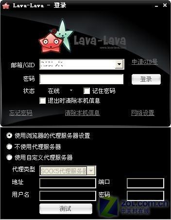 登陸界面除了標準的帳號登錄功能以外,Lava-Lava的設(shè)置比百度Hi豐富一些,網(wǎng)絡(luò)設(shè)置使局域網(wǎng)用戶可以方便地進行代理服務(wù)器項目的設(shè)置,還可以選擇“退出時清理本機消息”保護自己的隱私。百度Hi的設(shè)置則是清新簡潔。(圖5、圖6)