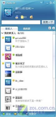 登陸以后進入主界面,百度Hi顯得略微清爽簡單一些,符合百度“簡單可依賴”的風格。