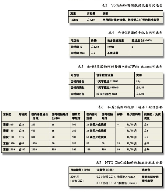 國外運營商 移動數據業(yè)務資費策略