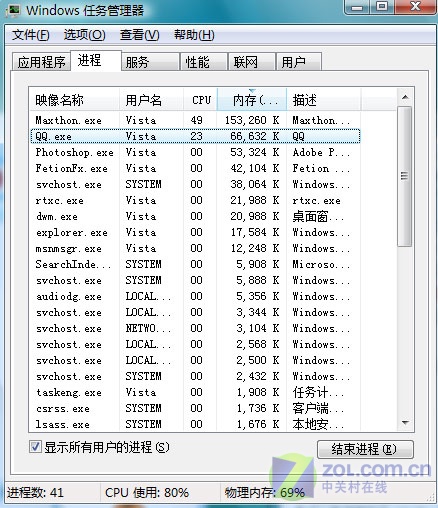 最后我們來看看大家都很關(guān)心的系統(tǒng)資源占用情況。沒有比較就沒有優(yōu)劣,大家從任務(wù)管理器的截圖就可以看出飛信、QQ、MSN這三款主流聊天軟件占用的系統(tǒng)資源多少了(如圖12)。