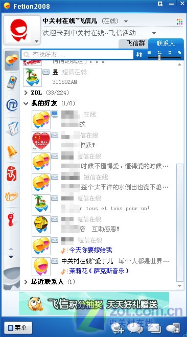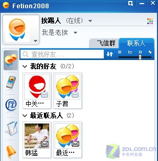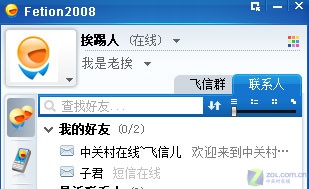 介紹完上面一些鮮為人知的小技巧后,我們總算可以登錄飛信 2008了!看看我添加到好友吧。如圖4所示: