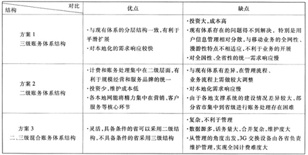 3G計(jì)費(fèi)賬務(wù)體系結(jié)構(gòu)主要分為三級(jí)賬務(wù)體系結(jié)構(gòu)、二級(jí)賬務(wù)體系結(jié)構(gòu)和二、三級(jí)混合賬務(wù)體系結(jié)構(gòu)等幾種方式。各種賬務(wù)體系結(jié)構(gòu)對(duì)比見(jiàn)表1。