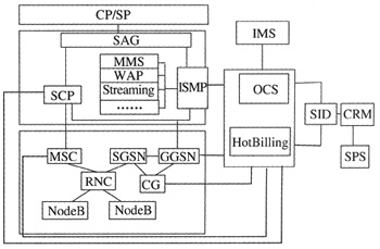 通過(guò)上述分析可見(jiàn),采用升級(jí)改造現(xiàn)有計(jì)費(fèi)系統(tǒng)進(jìn)而建設(shè)3G融合計(jì)費(fèi)系統(tǒng)的方案是比較恰當(dāng)?shù)倪x擇。目前認(rèn)可度較高的3G融合計(jì)費(fèi)解決方案體系架構(gòu)如圖3所示。