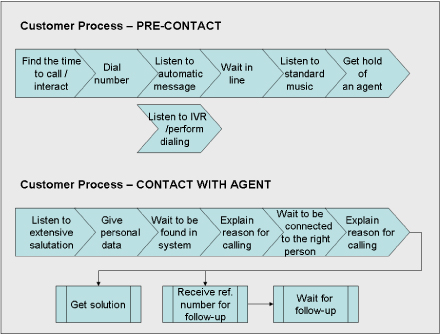 那么,從企業(yè)內部的觀點出發(fā)看我圍繞這次簡單的預定流程所產生的總體客戶體驗如何呢?這需要好好評估,我一共只打了兩次電話并在24小時內得到解決,而且我們之間的互動——很有可能——已經(jīng)被記錄在航空公司的CRM系統(tǒng)中。但是如果你問問作為客戶的我,我會給出一個完全不同的場景描述:首先,提供給我的可聯(lián)絡電話號碼實在太多了,其次,沒有說明這些電話號碼處理的“范圍”各是什么,再次代理質量不合格,她完全不知道自己該干什么,還得求助于另外一個同事,最后,也是很重要的一點,最終提交的解決方法并不能讓人接受。這些信息——或者說的更準確些,客戶的評價——出現(xiàn)在呼叫中心的報告里了嗎?出現(xiàn)在哪兒?沒有,這一方面是因為流程并不是以客戶為中心的觀點來定義的,另一方面因為我們是人,我們努力的在工作,不希望自己變成透明人。