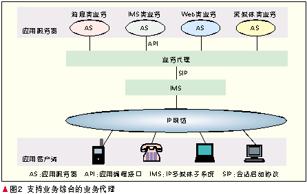 經(jīng)過(guò)多年的探索,業(yè)界取得共識(shí)網(wǎng)絡(luò)演進(jìn)必須基于業(yè)務(wù)驅(qū)動(dòng)的策略。必須指出的是,雖然基于SIP技術(shù)的IMS支持的業(yè)務(wù)從語(yǔ)音業(yè)務(wù)擴(kuò)展到了寬帶多媒體業(yè)務(wù),然而其控制機(jī)理本質(zhì)上還是源于傳統(tǒng)電信網(wǎng),因此它最適合于提供的還是諸如VoIP、集群話音、集群視頻等實(shí)時(shí)會(huì)話型業(yè)務(wù),諸如Web、電子商務(wù)等純數(shù)據(jù)型業(yè)務(wù)并不適合由IMS提供,其他許多有前景的業(yè)務(wù),如流媒體業(yè)務(wù)、IPTV、消息類業(yè)務(wù)等的確IMS已提出或正在積極研究其提供方法,但是已有其他的非IMS提供方式。因此,切不要認(rèn)為IMS是包羅萬(wàn)象的,更確切地說(shuō),IMS是電信界提出的網(wǎng)絡(luò)融合技術(shù),考慮得更多的必然就是和傳統(tǒng)電信業(yè)務(wù)模式類似的業(yè)務(wù)。為了使IMS在未來(lái)融合的信息通信網(wǎng)絡(luò)中繼續(xù)保持其重要的地位,在積極研究擴(kuò)大IMS業(yè)務(wù)能力的同時(shí),必須研究新的體系結(jié)構(gòu)既能夠包容IMS型業(yè)務(wù),也能夠包容非IMS型業(yè)務(wù),由此形成融合的開(kāi)放式的業(yè)務(wù)平面。這就是熱點(diǎn)研究之中的業(yè)務(wù)代理技術(shù),實(shí)際上就是架構(gòu)在IMS之上的綜合業(yè)務(wù)平臺(tái),如圖2所示。它至少能夠提供4大類業(yè)務(wù):IMS類業(yè)務(wù)、消息類業(yè)務(wù)、流媒體業(yè)務(wù)、Web業(yè)務(wù)以及它們的組合,也就是說(shuō),除了IMS系統(tǒng)的SIP協(xié)議和API以外,業(yè)務(wù)平臺(tái)還應(yīng)能支持其他眾多的非IMS系統(tǒng)協(xié)議和接口,由此構(gòu)成融合的業(yè)務(wù)層。IMS系統(tǒng)是其中的一個(gè)重要組成部分,擔(dān)負(fù)起通信網(wǎng)絡(luò)的融合重任。
