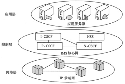 隨著通信技術(shù)不斷發(fā)展,通信網(wǎng)絡(luò)寬帶化成為一個(gè)明顯的發(fā)展趨勢(shì)。為了適應(yīng)這個(gè)發(fā)展趨勢(shì),向用戶提供更加豐富的移動(dòng)業(yè)務(wù)。3G移動(dòng)通信標(biāo)準(zhǔn)組織(3GPP)在R5版本中提出了IP多媒體子系統(tǒng)(IMS)的技術(shù)架構(gòu)[1],其核心思想是在3G網(wǎng)絡(luò)中引入支持IP多媒體業(yè)務(wù)的子系統(tǒng)。IMS的技術(shù)特點(diǎn)在協(xié)議層面上來(lái)說(shuō)。就是控制和應(yīng)用分離,如圖1所示?刂茖硬捎脮(huì)話初始化協(xié)議(SIP),應(yīng)用層支持各類IP以上的應(yīng)用層協(xié)議,如RTP、FTP、SMTP等。在網(wǎng)絡(luò)層面上來(lái)說(shuō),IMS采用承載網(wǎng)和控制網(wǎng)分離的原則。由于上述技術(shù)特點(diǎn),在IMS網(wǎng)絡(luò)上推出多媒體業(yè)務(wù)比3G
