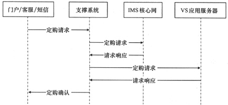 - 用戶可以通過(guò)Web(WAP)門戶、發(fā)送短信、客服系統(tǒng)(聲訊和營(yíng)業(yè)廳)等多種渠道進(jìn)行VS業(yè)務(wù)定購(gòu)操作,操作請(qǐng)求被發(fā)往支撐系統(tǒng)。