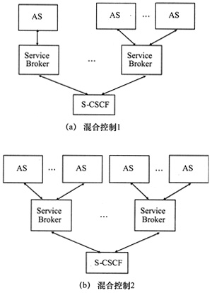 混合式控制結(jié)合了上述兩種方式,即有的ServiceBroker管理多個AS之間的業(yè)務(wù)交互,而有的ServiceBroker只和一個AS交互。在這種模式下,ServiceBroker不但要管理由它控制的AS之間的業(yè)務(wù)交互,還要管理屬于不同Service