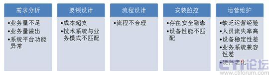 要領(lǐng)設(shè)計(jì)階段風(fēng)險(xiǎn):在該階段,企業(yè)將決定呼叫中心的建設(shè)規(guī)模、技術(shù)設(shè)備、組織架構(gòu)及運(yùn)營(yíng)模式等一系列環(huán)節(jié)。此過(guò)程中,最容易且是最嚴(yán)重的風(fēng)險(xiǎn)在于成本估算的差異和技術(shù)系統(tǒng)與業(yè)務(wù)模式的不匹配。多數(shù)企業(yè)在呼叫中心建設(shè)成本估算時(shí)由于經(jīng)驗(yàn)的缺乏無(wú)法全面預(yù)測(cè)建設(shè)成本,特別是對(duì)運(yùn)營(yíng)費(fèi)用的把握常常相差數(shù)倍。因此,實(shí)際建設(shè)成本過(guò)分超出預(yù)算成為困擾項(xiàng)目執(zhí)行者的一大難題。這就使得企業(yè)對(duì)呼叫中心的投入猶如一個(gè)無(wú)底洞,一投再投,嚴(yán)重影響了企業(yè)資金鏈的正常運(yùn)轉(zhuǎn),也為呼叫中心的“成本”角色加重了色彩。此外,很多公司或者系統(tǒng)集成商因?yàn)槌跏纪度氤杀尽⒔ㄔO(shè)經(jīng)驗(yàn)或者運(yùn)營(yíng)經(jīng)驗(yàn)等方面的限制,在呼叫中心建設(shè)初期很重視技術(shù)平臺(tái)的建設(shè),但忽視了運(yùn)營(yíng)思想在系統(tǒng)方案中的體現(xiàn),在系統(tǒng)建成后,再去完善運(yùn)營(yíng)系統(tǒng),這樣極大地增加了呼叫中心的運(yùn)營(yíng)和管理成本,也影響到管理效率。