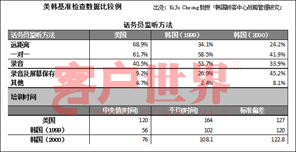 上圖是全南大學(xué)教授Ki Ju Cheong調(diào)查比較韓國和美國客服中心后的報(bào)告書的一部分。Ki Ju Cheong教授自稱是因分析客服中心標(biāo)準(zhǔn)指數(shù)聞名于世的美國Purdue大學(xué)安東博士的學(xué)生。通過這個(gè)圖表可以簡單看出韓國客服中心經(jīng)營的改善狀況。