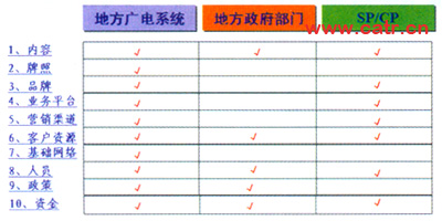 在投資與收益方面,雙方共同出資,成立公司,調(diào)動(dòng)雙方相關(guān)的優(yōu)勢(shì)資源。并且協(xié)調(diào)了與SP/CP、政府、行業(yè)部門(mén)等多方面原本復(fù)雜的關(guān)系。能夠增加的收入是點(diǎn)播和直播節(jié)目收費(fèi)。收費(fèi)模式方面增加電視包月費(fèi)、頻道組合費(fèi)。合作分成通過(guò)股份公司分紅。