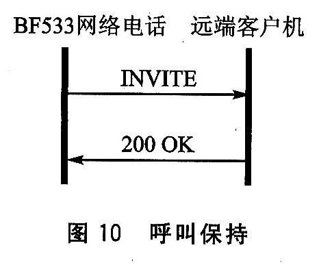 BF533網絡電話遠端客戶機遠端各尸機回復200 0K接受保持,如圖10所示。同理,呼叫恢復就是將c參數恢復原值,過程與呼叫保持相同。