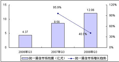 圖 1 2008年Q3中國(guó)統(tǒng)一通信整體市場(chǎng)規(guī)模