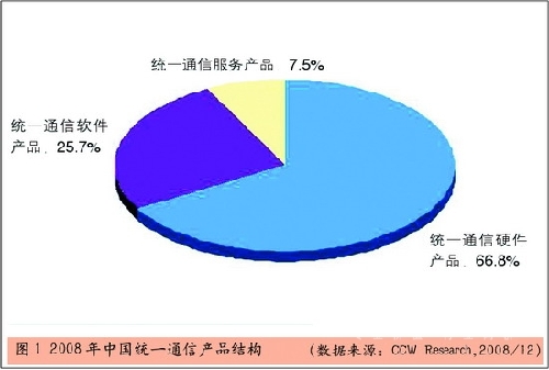 從產(chǎn)品結(jié)構(gòu)角度分析,雖然受硬件設(shè)備價(jià)格因素的影響,統(tǒng)一通信設(shè)備市場(chǎng)仍然是通信市場(chǎng)中最大份額的一部分,市場(chǎng)份額占到66.8%。而且隨著企業(yè)用戶對(duì)于統(tǒng)一通信理解能力的加深,統(tǒng)一通信軟件產(chǎn)品與統(tǒng)一通信服務(wù)越來越受到更多企業(yè)的認(rèn)同。與2007年相比,統(tǒng)一通信軟件和服務(wù)產(chǎn)品市場(chǎng)份額有一定比例的增加。2008年,統(tǒng)一通信軟件產(chǎn)品達(dá)到市場(chǎng)份額的25.7%,特別是統(tǒng)一通信服務(wù)產(chǎn)品,增長(zhǎng)迅速,市場(chǎng)份額超過7.5%。