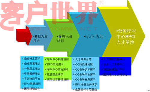 自然,首先得有人才的生產(chǎn)活著吸引能力,也就是意味著產(chǎn)業(yè)園區(qū)周邊有大量的相關(guān)院校,或者產(chǎn)業(yè)園區(qū)具有非常強的吸引外地人才的能力(例如北京),然后才談到人才的培養(yǎng),揚州技師學(xué)院首設(shè)“呼叫專業(yè)”成為行業(yè)內(nèi)一個亮點,事實上,北京早在2年前已經(jīng)在開展試點的工作了。關(guān)于人才解決方案以及人員的培訓(xùn),下面的這張圖表述更加淋漓盡致: