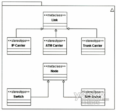 該擴(kuò)展針對Link和Node和兩個(gè)元類增加了NGN中關(guān)于承載和節(jié)點(diǎn)的定型?梢愿鶕(jù)需要對該模型作進(jìn)一步擴(kuò)展,如可以增加關(guān)于接入網(wǎng)承載的定型等。