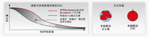 為了向聯(lián)網(wǎng)家庭提供強(qiáng)大的無線骨干網(wǎng),Broadcom利用Acclerange技術(shù)對其新的802.11n路由器平臺作了全面優(yōu)化,其軟硬件增強(qiáng)性能確保了家庭中任一角落的更健壯的無線覆蓋。Accelerange軟件架構(gòu)還支持時空分組編碼(STBC)技術(shù),采用了獨(dú)特的2×2天線結(jié)構(gòu),從而能以盡可能低的成本提供更好的性能。它的非線性均衡器只需要兩個,而65nm工藝的集成更是有助于進(jìn)一步降低成本。另外,基于Accelerange的解決方案針對視頻分發(fā)和其他多媒體應(yīng)用作了優(yōu)化,其內(nèi)置算法可以檢測多媒體數(shù)據(jù)流,并通過動態(tài)調(diào)整來實現(xiàn)最優(yōu)性能。經(jīng)認(rèn)證的動態(tài)頻率選擇(DFS)技術(shù)還可以在5GHz頻段內(nèi)增加15個信道。