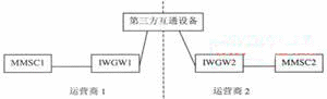 為實現(xiàn)不同運(yùn)營商的用戶之間相互發(fā)送和接收多媒體消息,需要在不同運(yùn)營商的多媒體消息中心之間實現(xiàn)互通。該互通需要多媒體消息中心(MMSC)與互通設(shè)備(IWGW)的連接、IWGW之間的連接實現(xiàn)。當(dāng)一個運(yùn)營商的網(wǎng)絡(luò)用戶向另一個運(yùn)營商的網(wǎng)絡(luò)用戶發(fā)送多媒體消息時,該多媒體消息經(jīng)發(fā)送方用戶歸屬的MMSC通過IWGW提交給接收方用戶歸屬的多媒體消息中心,由接收方用戶歸屬的MMSC向其網(wǎng)內(nèi)用戶發(fā)送。網(wǎng)間多媒體消息業(yè)務(wù)互通網(wǎng)絡(luò)結(jié)構(gòu)中主要包括多媒體消息中心(MMSC),互通設(shè)備(IWGW)以及相關(guān)的輔助設(shè)備等。IWGW是指不同運(yùn)營商網(wǎng)絡(luò)之間的多媒體消息互通設(shè)備。網(wǎng)間多媒體消息互通設(shè)備間的互聯(lián)可以由兩個運(yùn)營商的IWGW直接連接,也可以經(jīng)過第三方互通設(shè)備轉(zhuǎn)接(見圖1、圖2)。