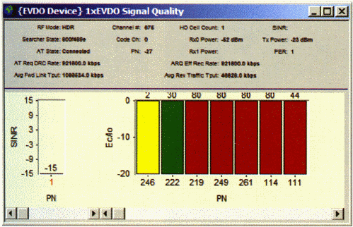 測試中,不僅可以得到各導頻級的信息、SINR、反向鏈路性能、功率控制、信令消息及RLP層吞吐量信息,還可以通過安捷倫接收機進行獨立的射頻環(huán)境測試,如導頻掃描、頻譜測試和連續(xù)波測試,通過接收機的這些測試數據,查找網絡中存在的導頻污染、鄰區(qū)丟失、基站始終、孤島效應、外部干擾等問題,從多方面對出現的問題進行定位分析,極大的提高了測試的效率。
