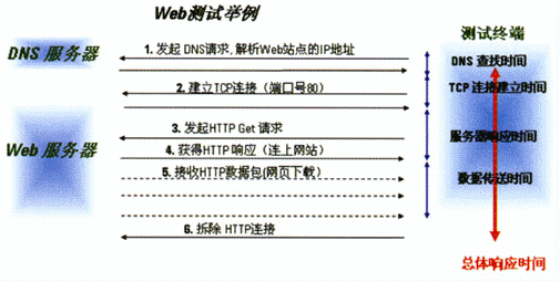 在用戶對無線數據業(yè)務的訪問過程中,通常會包含多個階段(業(yè)務處理過程)。如當用戶在使用手機要瀏覽網頁的時候,先輸入網頁的地址,然后按手機上的“訪問”按鈕,一段時間后手機的屏幕上就會顯示出要瀏覽的網頁頁面?此坪唵蔚倪^程,其實這里面包含了以下幾個步驟:DNS查找時間、TCP連接時間、服務器響應時間和數據下載時間。在這中間,只要任何一步出了問題,如DNS解析時間過長、TCP連接建立時間過長、應用服務器負載過重、網絡可用信道資源少而造成數據下載慢,都可能會造成頁面下載失敗。因此,為了能準確地定位造成用戶對Web服務質量感知度差的原因,我們就需要得到各階段的性能參數,這樣才能快速地進行相關服務器和網絡的故障查找并解決問題。