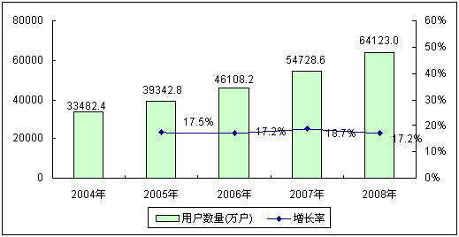 中國(guó)移動(dòng)通信產(chǎn)業(yè)發(fā)展可以追溯到1987年,當(dāng)時(shí)中國(guó)確定了以TACS制式作為模擬制式蜂窩移動(dòng)電話的標(biāo)準(zhǔn),首次為中國(guó)移動(dòng)通信技術(shù)產(chǎn)業(yè)化發(fā)展奠定了基礎(chǔ)。隨著通信技術(shù)的進(jìn)步,數(shù)字化的GSM移動(dòng)通信網(wǎng)絡(luò)制式快速取代了原有的TACS制式。進(jìn)入2000年以后,伴隨中國(guó)改革開(kāi)放的深入和經(jīng)濟(jì)的進(jìn)一步轉(zhuǎn)型,移動(dòng)通信技術(shù)得到迅猛發(fā)展,手機(jī)普及率得到迅速提高。2004~2008年,中國(guó)移動(dòng)電話用戶數(shù)量每年都保持著17%以上的快速增長(zhǎng),截止到2008年底,中國(guó)移動(dòng)電話用戶數(shù)量已經(jīng)達(dá)到6.41億戶,與2004年相比增長(zhǎng)了近一倍。