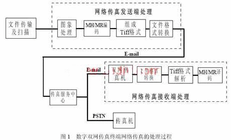 實(shí)現(xiàn)完整網(wǎng)絡(luò)傳真收發(fā)的功能與步驟,可以分為網(wǎng)絡(luò)傳真發(fā)送處理及網(wǎng)絡(luò)傳真接收處理兩個(gè)部分。其中網(wǎng)絡(luò)傳真接收端的處理可以理解為網(wǎng)絡(luò)傳真發(fā)送處理的逆過程。