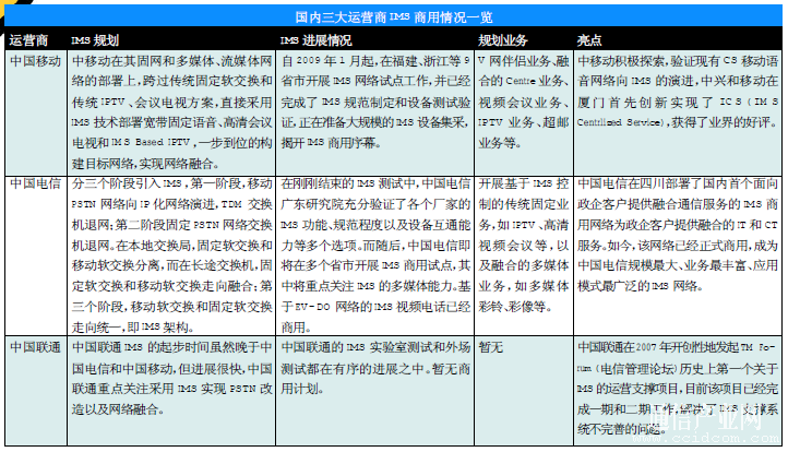 國內(nèi)三大運(yùn)營商已經(jīng)開始積極試點(diǎn)和部署IMS商用網(wǎng)絡(luò),樹立全業(yè)務(wù)競(jìng)爭市場(chǎng)的優(yōu)勢(shì)。