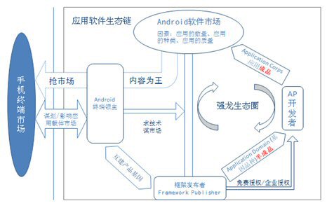 相對封閉式平臺的開發(fā),Android給開發(fā)者帶了更多地自由創(chuàng)新的空間,好的產業(yè)鏈將給開發(fā)者帶來更多地產品選擇領域,在這個開放的強龍生態(tài)里,筆者這樣解釋開發(fā)者角色:
