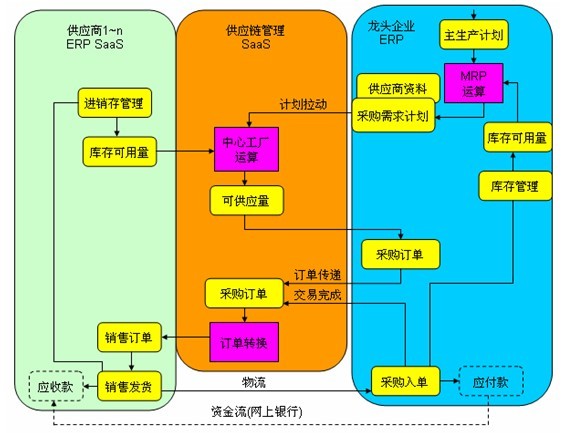 在線需求計劃管理。當(dāng)龍頭完成企業(yè)內(nèi)部的MRP運算后,便輸出“采購需求計劃”;該計劃作為供應(yīng)鏈管理平臺,中心工廠(或稱虛擬企業(yè))運算的輸入,此刻供應(yīng)鏈管理平臺可以動態(tài)地挖掘供應(yīng)商的(ERP)的“庫存可用量”,并計算出“可供應(yīng)量”,該數(shù)據(jù)可提供給龍頭企業(yè)編制“采購訂單”。