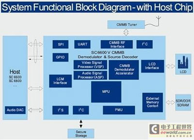 目前,支持CMMB標(biāo)準(zhǔn)的芯片產(chǎn)品多是信道解調(diào)芯片,必須要外配信源解碼處理器芯片來完成信源解碼,從而才能真正實(shí)現(xiàn)手機(jī)電視功能。SC6600V是業(yè)界首顆集成了CMMB解調(diào)和H.264信源解碼的高性能、低功耗芯片,它的集成度提高直接帶來利益點(diǎn)就是功耗和成本的降低,豐富的外圍接口以及靈活的功能選擇給這款芯片增添了增值的空間,擴(kuò)展了其應(yīng)用領(lǐng)域。