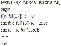 用以實(shí)現(xiàn)G、B的代碼與上面類似,在此不再贅述。以下代碼實(shí)現(xiàn)R_full*1/256功能。