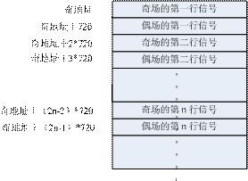 第1種:將一幀的數(shù)據(jù)存儲(chǔ)下來(lái),根據(jù)奇偶場(chǎng)的不同(區(qū)分可以根據(jù)XY),在寫周期的時(shí)候,因?yàn)槠鎴?chǎng)的行之間有偶場(chǎng)的信號(hào),所以寫數(shù)據(jù)的時(shí)候需要跳地址寫,根據(jù)行同步信號(hào)(或者SAV也可以)來(lái)區(qū)分行,換行的時(shí)候地址要加額外的720(用來(lái)存放夾雜在奇場(chǎng)信號(hào)中的偶場(chǎng)信號(hào)),直到出現(xiàn)偶場(chǎng)信號(hào)(也就是XY=1)地址切換為初始基地址加720,其余的同奇行的處理方法,具體的地址分配表參照?qǐng)D4。