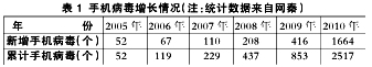 移動(dòng)智能終端與移動(dòng)應(yīng)用商店在向用戶提供豐富多彩的應(yīng)用軟件和數(shù)字內(nèi)容的同時(shí),智能終端病毒、應(yīng)用軟件吸費(fèi)、非法信息傳播等安全問(wèn)題不斷暴露。移動(dòng)智能終端已經(jīng)成了病毒發(fā)威的新戰(zhàn)場(chǎng),手機(jī)僵尸、給你米等手機(jī)病毒破壞終端功能,惡意吸取資費(fèi),竊取用戶隱私,極大地?fù)p害了用戶利益。據(jù)網(wǎng)秦統(tǒng)計(jì),2010年新增的手機(jī)病毒數(shù)是2004~2009年手機(jī)病毒總數(shù)的近兩倍(見(jiàn)表1),預(yù)計(jì)共感染手機(jī)800萬(wàn)部以上。據(jù)報(bào)道,我國(guó)至少有10家Android平臺(tái)的吸費(fèi)SP或渠道公司,抽樣顯示近40%的Android常見(jiàn)應(yīng)用程序被植入惡意吸費(fèi)代碼。在信息內(nèi)容安全方面,包含色情暴力、反動(dòng)言論等信息的應(yīng)用軟件曾出現(xiàn)在App Store中,危害青少年健康成長(zhǎng),影響社會(huì)穩(wěn)定團(tuán)結(jié)。2010年10月,美國(guó)杜克大學(xué)等對(duì)30款A(yù)ndroid應(yīng)用進(jìn)行分析,發(fā)現(xiàn)其中有三分之二的應(yīng)用通過(guò)分享用戶地理定位數(shù)據(jù)或信息的方式侵犯用戶隱私,半數(shù)應(yīng)用未經(jīng)用戶允許將用戶地理定位信息發(fā)送給廣告網(wǎng)絡(luò)或數(shù)據(jù)分析公司。我國(guó)還存在智能手機(jī)終端內(nèi)置應(yīng)用軟件和第三方應(yīng)用軟件涉黃或吸費(fèi)、手機(jī)WAP網(wǎng)站涉黃等問(wèn)題。另外,黑莓獨(dú)特的加密技術(shù)引發(fā)擔(dān)憂,德國(guó)等紛紛要求監(jiān)控黑莓通信服務(wù)。