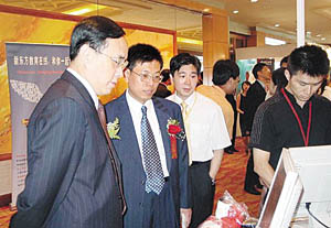 常小兵副總經(jīng)理(左一)在參觀(guān)展區(qū)。