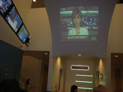 MediaFLO USA的前臺大廳布滿屏幕,說明它有媒體血緣。