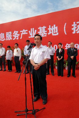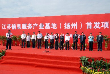 日前,江蘇信息服務產(chǎn)業(yè)基地(揚州)首發(fā)項目開工典禮在廣陵新城隆重舉行,這標志著產(chǎn)業(yè)基地建設邁入了實質性階段。揚州市人民政府市長王燕文和天津泰達公司董事長劉惠文為奠基石揭幕,市委常委、常務副市長王榮平致賀詞,江蘇省信息產(chǎn)業(yè)廳副廳長龔懷進出席了開工典禮。