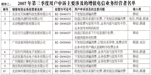 | 增值電信業(yè)務經營許可證年檢“不合格”企業(yè)名單公布 2007-10-26 |