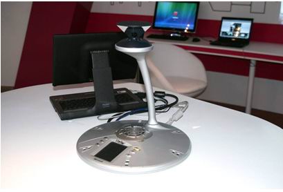 在耐心聽完介紹后,禁不住誘惑,我便親自做了現(xiàn)場體驗(yàn),原來這套系統(tǒng)所使用的360o攝像頭不同于一般的攝像頭,它集4個攝像頭以及USB設(shè)備為一體,不改變位置就能輕松實(shí)現(xiàn)360度全景覆蓋,讓所有人真正面對面交流。而投影儀的界面設(shè)定更是人性化,界面分上下兩部份,上半部分顯示的是PPT內(nèi)容和發(fā)言者,下半部分顯示的是與會人員。而它的智能語音識別系統(tǒng)更是讓人叫絕,投影儀上的發(fā)言區(qū)頭像根據(jù)發(fā)言者的聲音自動更換,而不受人聲以外的任何聲音的干擾。系統(tǒng)并附帶情景解說詞,系統(tǒng)會自動介紹與會人員所在地。在投放PPT界面旁邊有個信息欄,在上面能夠看到負(fù)責(zé)人的在線信息,并且可以選擇最合適的方式進(jìn)行溝通,不但可以發(fā)即時消息和傳輸文件,還可以進(jìn)行語音通話,甚至可以直接用語音連接辦公室電話,只要有網(wǎng)絡(luò),隨便哪里都可以接得到辦公室電話。