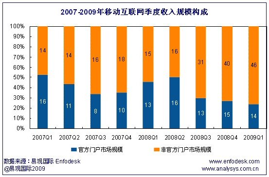 2009首季中國移動互聯(lián)網(wǎng)收入達(dá)60億 運營商官方門戶有望快速增長