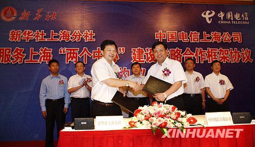根據(jù)新華社上海分社與中國電信上海公司簽署的信息化戰(zhàn)略合作協(xié)議,雙方將共同致力于為上!皟蓚中心”建設(shè)開展合作,向上海的機(jī)構(gòu)用戶和個人用戶提供高端信息服務(wù)。