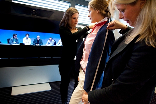 虛擬試衣間(基于 BT 的統(tǒng)一通信視頻解決方案和 思科的TANDBERG 技術(shù))包括移動攝像頭和錄音設(shè)施等附件,能夠使位于阿姆斯特丹和紐約的設(shè)計(jì)團(tuán)隊(duì)更迅速、更高效地與香港的制造團(tuán)隊(duì)協(xié)作。這些團(tuán)隊(duì)將不用進(jìn)行長途飛行就能夠面對面地討論每個服裝設(shè)計(jì)細(xì)節(jié)。
