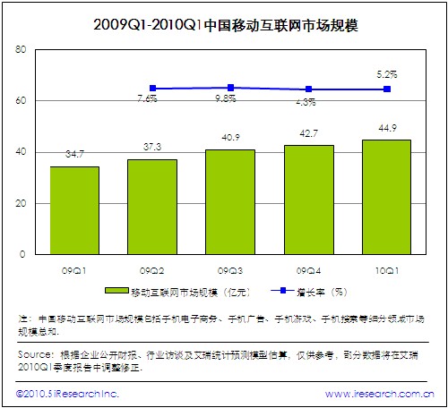 2010第一季度中國(guó)移動(dòng)互聯(lián)網(wǎng)市場(chǎng)規(guī)模穩(wěn)步增長(zhǎng)