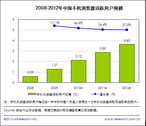 艾瑞報告稱今年手機瀏覽器用戶預(yù)計將破兩億