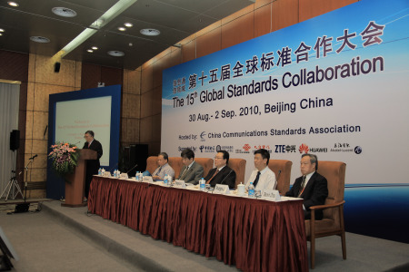 8月30日至9月2日,信息通信領(lǐng)域“第15屆全球標(biāo)準(zhǔn)合作大會(huì)”(GSC-15)在北京隆重召開,會(huì)議由中國通信標(biāo)準(zhǔn)化協(xié)會(huì)(CCSA)主辦。來自國際電信聯(lián)盟(ITU)和北美、歐洲、中日韓的八個(gè)伙伴標(biāo)準(zhǔn)化組織(日本無線工業(yè)及商貿(mào)聯(lián)合會(huì)(ARIB)、中國通信標(biāo)準(zhǔn)化協(xié)會(huì)(CCSA)、歐洲電信標(biāo)準(zhǔn)化協(xié)會(huì)(ETSI)、加拿大ICT標(biāo)準(zhǔn)咨詢委員會(huì)(ISACC)、國際電信聯(lián)盟(ITU)、美國電信工業(yè)解決方案聯(lián)盟(ATIS)、美國電信行業(yè)協(xié)會(huì)(TIA)、韓國電信技術(shù)協(xié)會(huì)(TTA)和日本電信技術(shù)委員會(huì)(TTC)),以及ISO/IEC JTC1、ANSI、OMA、BBF、中國電子工業(yè)標(biāo)準(zhǔn)化技術(shù)協(xié)會(huì)、TD-SCDMA產(chǎn)業(yè)聯(lián)盟、感知中國物聯(lián)網(wǎng)聯(lián)盟等19家觀察員的共140多名代表參加了此次會(huì)議。