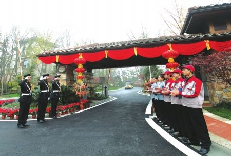 圖:物業(yè)團(tuán)隊(duì)整齊列隊(duì)歡迎業(yè)主