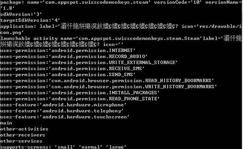 Jacky舉例,安智網(wǎng)的一款應(yīng)用軟件名為屏幕水珠,在2010年7月份聯(lián)系原作者進(jìn)行的漢化,由于效果不錯(cuò),一些廠商進(jìn)行修改后,在代碼中加了收取和發(fā)送短信以及讀取和寫入書簽的權(quán)限。