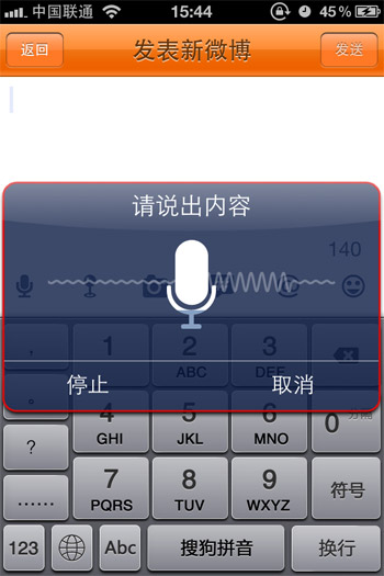 另外,在“發(fā)表新微博”輸入框底部,有明顯的語音輸入按鈕、位置定位等圖標(biāo),用戶點(diǎn)擊錄制微博,完畢后系統(tǒng)將會(huì)進(jìn)行識(shí)別計(jì)算,最后以文字形式呈現(xiàn)在輸入框中。據(jù)悉,此種方式采用了科大訊飛語音輸入技術(shù),但經(jīng)實(shí)際試用發(fā)現(xiàn),目前測試版本還還存在一定問題,對(duì)方言、同音字、語音速度、使用環(huán)境影響比較大,實(shí)際使用起來識(shí)別的效率并不高。